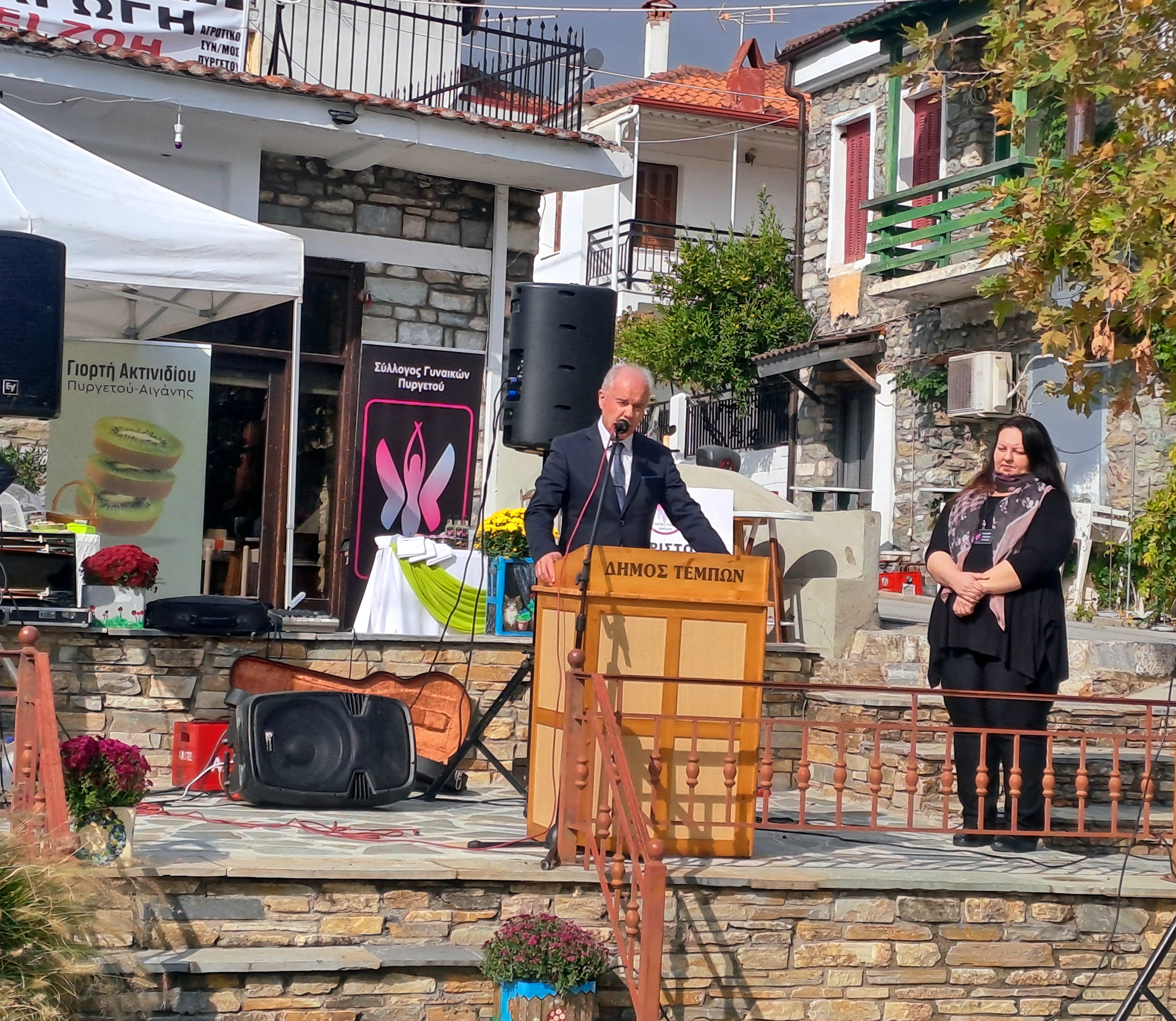 Στον χαιρετισμό του, ο Δήμαρχος Τεμπών κ. Γιώργος Μανώλης τόνισε τη σημασία της γιορτής ως αναγνώρισης της προσπάθειας των ανθρώπων της παραγωγής, κάνοντας ειδική αναφορά στα προβλήματα που αντιμετωπίζουν οι αγρότες και οι κτηνοτρόφοι της περιοχής: