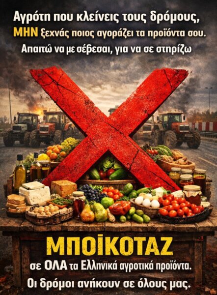 Να σημειωθεί πως οι αγρότες οι οποίοι βρίσκονται στα μπλόκα είναι κυρίως αυτοί που παράγουν στην πλειοψηφία τους εξαγώγιμα προϊόντα όπως σιτάρια, βαμβάκια και λοιπά και οι τιμές τους καθορίζονται από μεσάζοντες και τις διεθνείς χρηματιστηριακές εξελίξεις, οπότε είναι άξιο απορίας ποιους προσπαθούν να στοχοποιήσουν με αυτή την τραγική επικοινωνιακή μέθοδο οι γνωστοί άγνωστοι “παρακρατικοί” επικοινωνιολόγοι;
