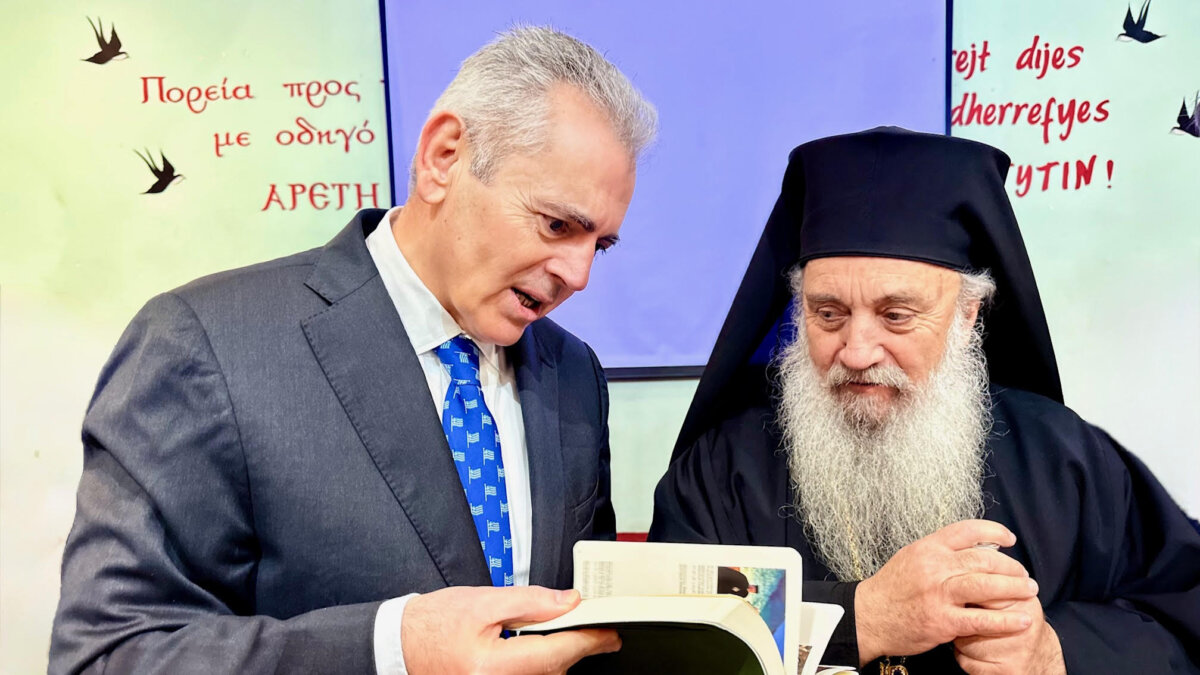Ο επικεφαλής της ΔΣΟ στην ομιλία του υπογράμμισε, επίσης, ότι «η Αλβανία και οι περιοχές όπως είναι το Αργυρόκαστρο, οι Άγιοι Σαράντα, η Κορυτσά, μας δείχνουν και κάτι άλλο. Την αναπόσπαστη σχέση που διατηρεί ο άνθρωπος με τις παραδόσεις αλλά και τη θρησκευτική πίστη του. Γιατί, τι άλλο μας αποκαλύπτει το γεγονός ότι οι δεκαετίες της πλέον καταπιεστικής και ολοκληρωτικής αθεϊστικής πολιτικής στην Ευρώπη απέτυχαν παταγωδώς. Με την πτώση του καθεστώτος, που ίδρυσε ένας άνθρωπος που καταγόταν απ’ αυτήν ακριβώς την πόλη, επάνω στα ερείπια των κατεστραμμένων εκκλησιών και μονών, άνθισαν νέες. Και ο σταυρός, για μια ακόμη φορά, αναδείχθηκε και πάλι τροπαιούχος. Κι αυτό συνέβη για δύο βασικούς λόγους. Ο ένας είναι γιατί εσείς, οι γονείς σας, οι παππούδες και οι γιαγιάδες σας, διατηρήσατε εντός σας τα πιστεύω σας. Ο φόβος, η καταστολή, οι φυλακίσεις και οι εξορίες δεν κατάφεραν να τα εξοντώσουν. Γιατί από τη ψυχή του ανθρώπου κανένα καθεστώς και κανένας μηχανισμός δεν μπορεί να εκτοπίσει την αλήθεια αν ο άνθρωπος δεν το επιθυμεί.