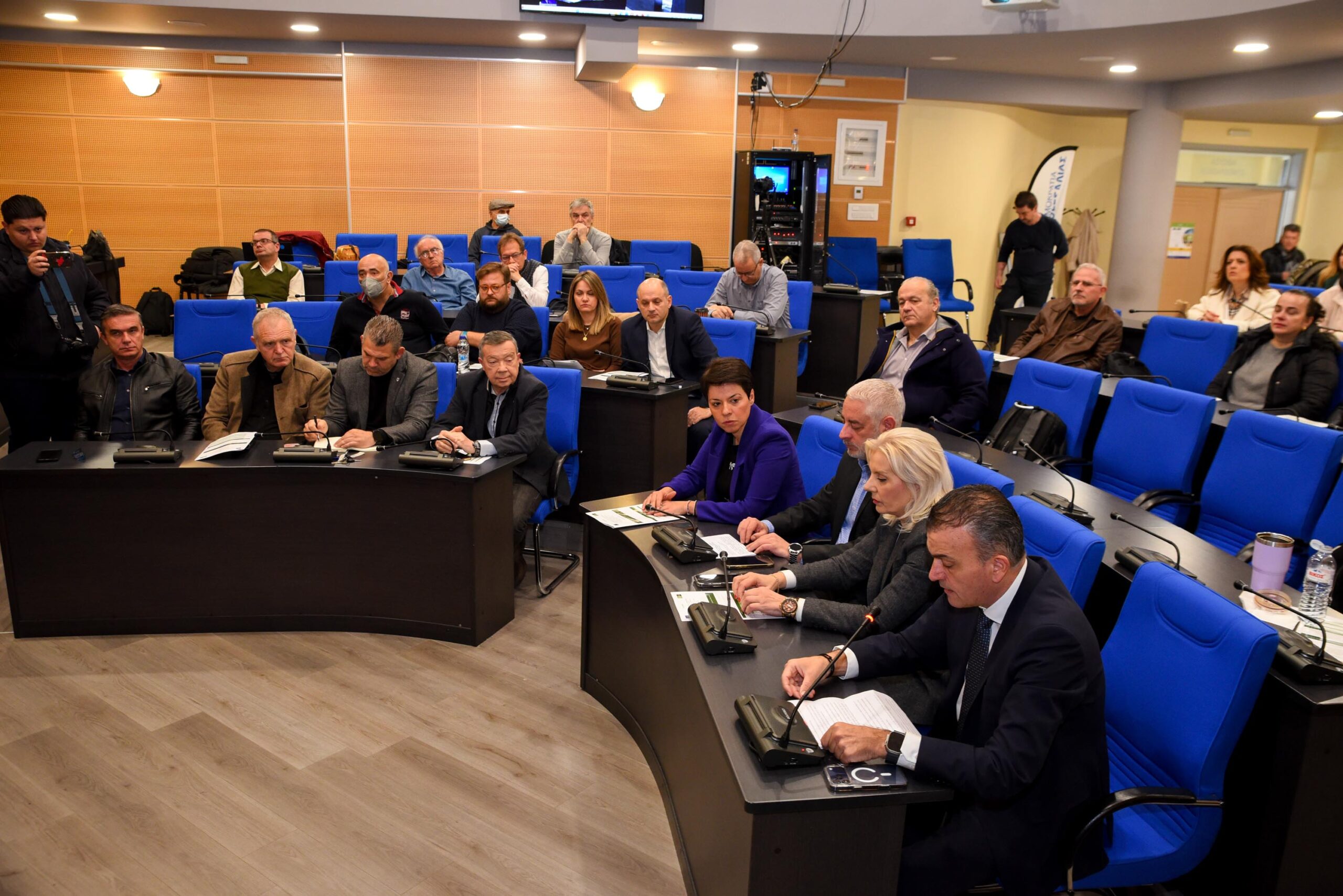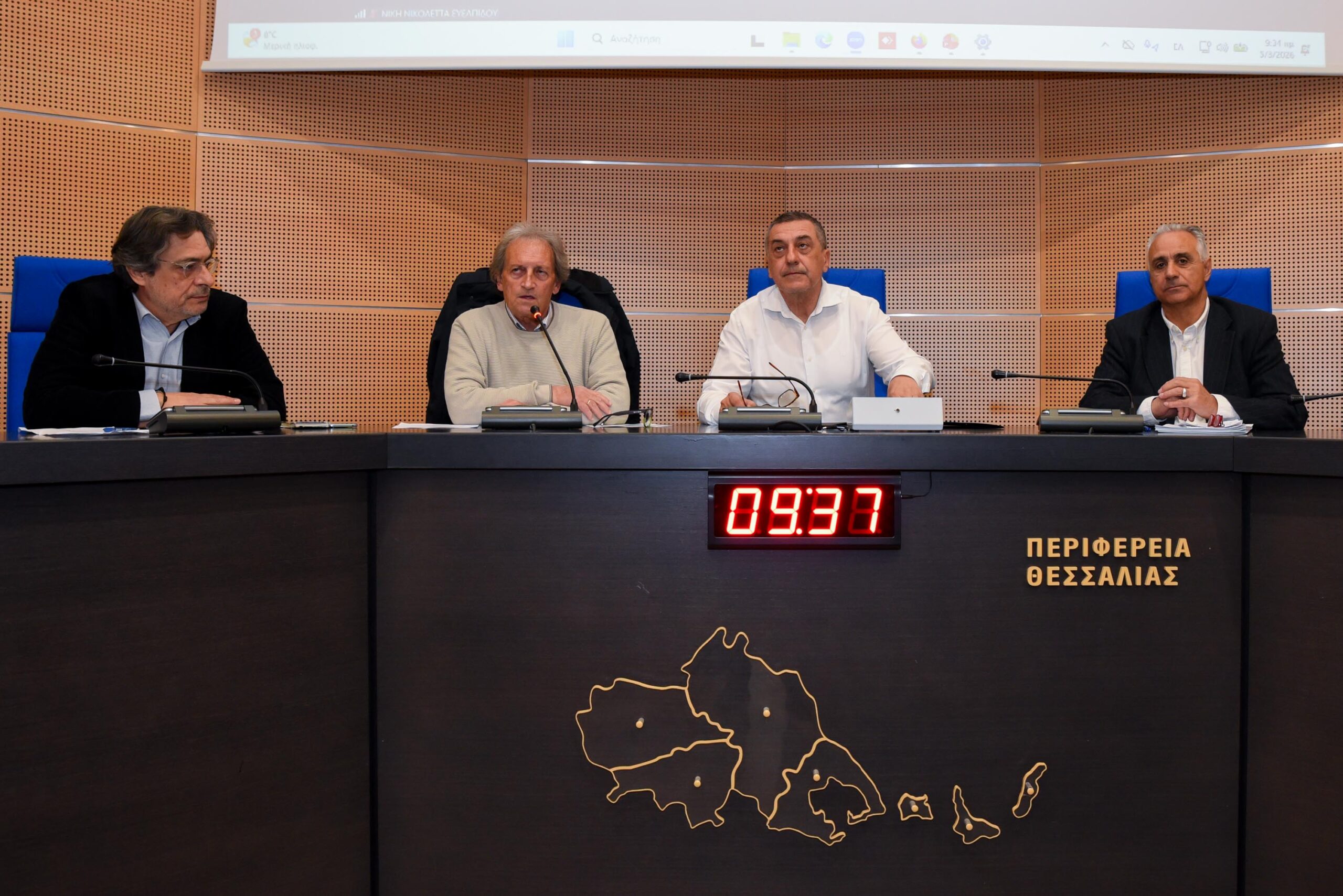 Αμέσως μετά τους χαιρετισμούς ακολούθησε αναλυτική επισκόπηση του Περιφερειακού Σχεδίου για την προσαρμογή στην κλιματική αλλαγή από τον Θεματικό Αντιπεριφερειάρχη Περιβάλλοντος, Φώτη Λαμπρινίδη. το οποίο στηρίζεται στο βασικό τετράπτυχο: Παρακολουθούμε –Διορθώνουμε- Επικαιροποιούμε –Βελτιώνουμε. «Δυστυχώς οδεύουμε στο ακραίο σενάριο του μετριασμού των εκπομπών αερίου του θερμοκηπίου.Οι πόλεμοι για τα ορυκτά καύσιμα και η πρόσφατη σύρραξη στο Ιράν επιτείνουν την εξέλιξη. Η Ανατολική Μεσόγειος ως καυτό σημείο της κλιματικής αλλαγής προδιαγράφει ένα δυσοίωνο μέλλον για τη Θεσσαλία και προετοιμαζόμαστε κατάλληλα επικαιροποιώντας το σχέδιο. Επιλέγοντας την εν θερμώ προσαρμογή, με συνεχή παρακολούθηση κα μια σαφώς πιο ευέλικτη αντιμετώπιση των καταστάσεων».
