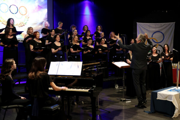 Η εκδήλωση ξεκίνησε με την χορωδία της InDONNAtiόn» που ερμήνευσε τον Ύμνο των Ολυμπιακών Αγώνων.