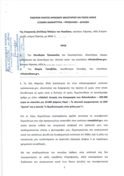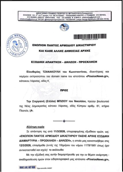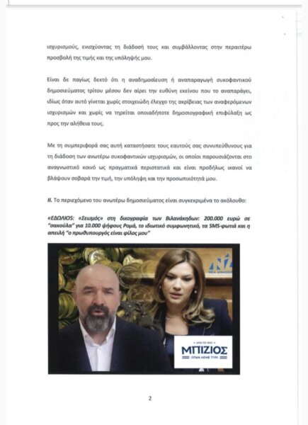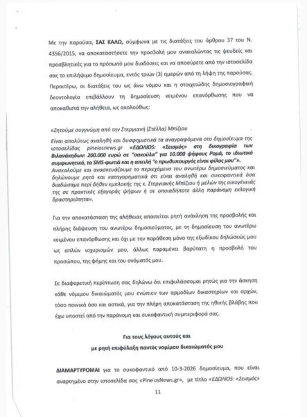 Η εξώδικη διαμαρτυρία της κας Στέλλας Μπίζιου