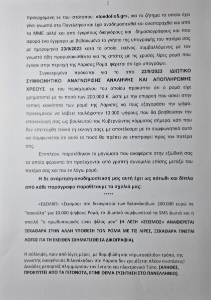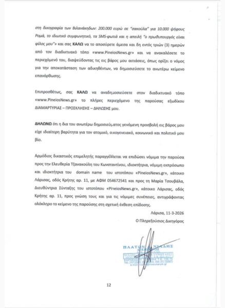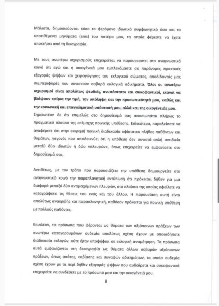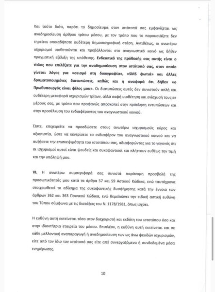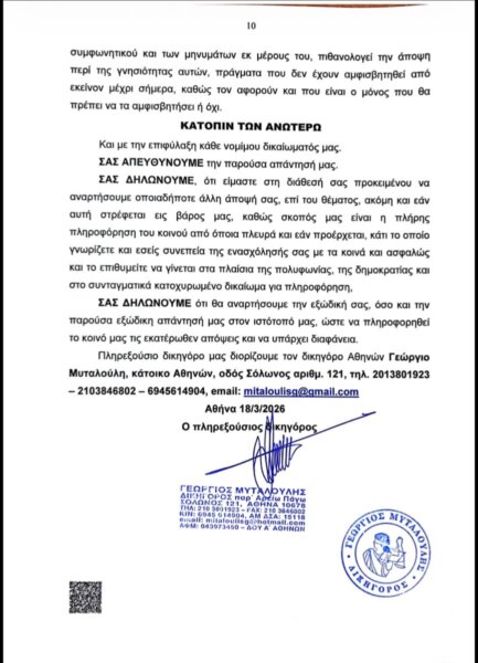 Παρακάτω παρατίθεται το περιεχόμενο της εξώδικης απάντησης: