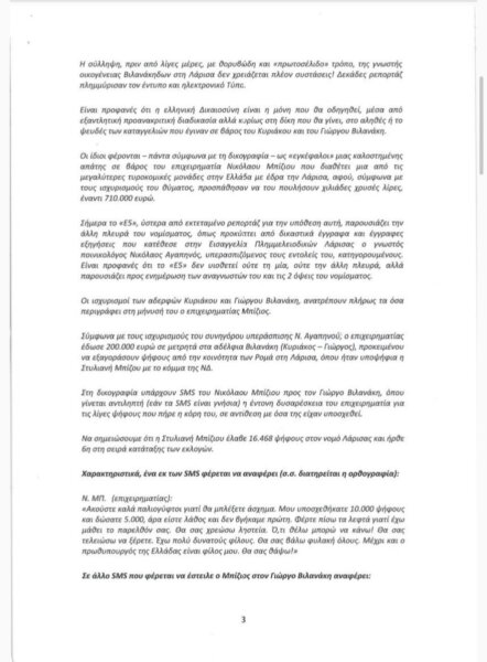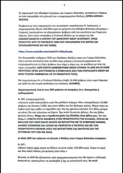 Εξώδικη διαμαρτυρία απέστειλε η πρώην βουλευτής της Νέας Δημοκρατίας, Στέλλα Μπίζιου, εκφράζοντας τις αντιρρήσεις της σχετικά με το άρθρο: «Σεισμός» στη δικογραφία των Βιλανάκηδων: 200.000 ευρώ σε “σακούλα” για 10.000 ψήφους Ρομά, το ιδιωτικό συμφωνητικό, τα SMS-φωτιά και η απειλή “ο πρωθυπουργός είναι φίλος μου”, το οποίο αναδημοσιεύτηκε από το ΕΔΩΛΙΟ5.