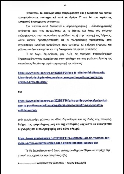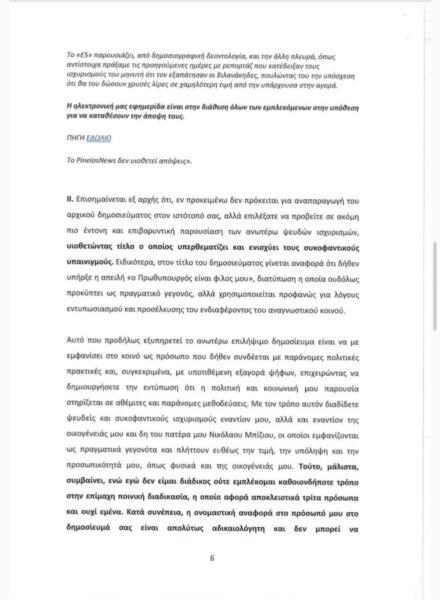 Η απάντηση της ιδιοκτήτριας του PineiosNews και υπεύθυνης για το άρθρο, κας Ελευθερίας Τζανακούλη: